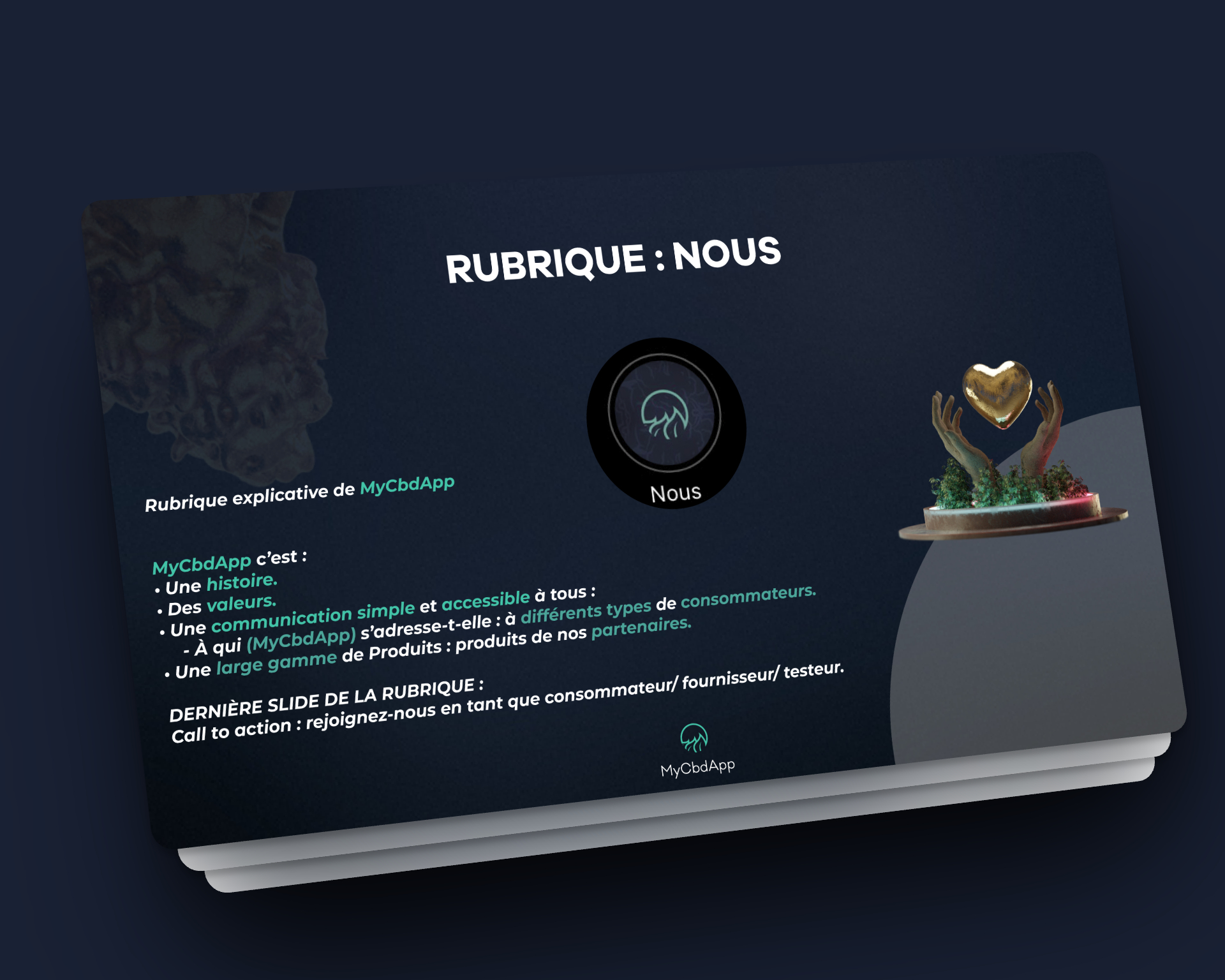 Un logo détaillé mettant en avant un jeu de mains symbolisant soutien et appartenance au GDI, avec des bras aux couleurs distinctes (vert = positif, bleu = confiant, orange = dynamique, jaune = optimiste) et des mots tatoués en police gang sur les phalanges, renforçant l’identité du groupe